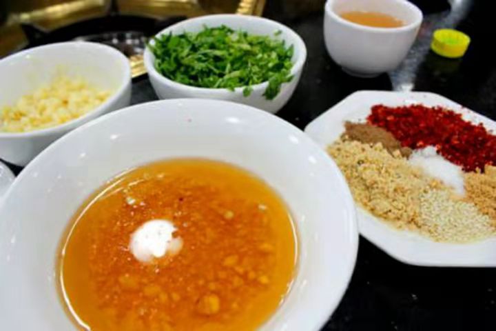 油碟是重庆人吃火锅的标配蘸料,常见的用料有蒜泥、香油、鹌鹑蛋等。